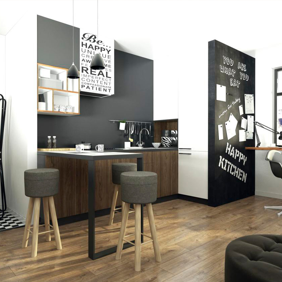 Ideal para una sala de estar con cocina americana, gracias al ajuste de nivel.